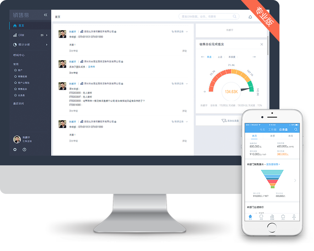 擺脫用戶限制,追蹤您的銷售線索,銷售機會,沉淀客戶信息,同時管理市場活動,合同回款,通過銷售漏斗分析,精準銷售預測和自定義儀表盤深度管理您的整個銷售周期