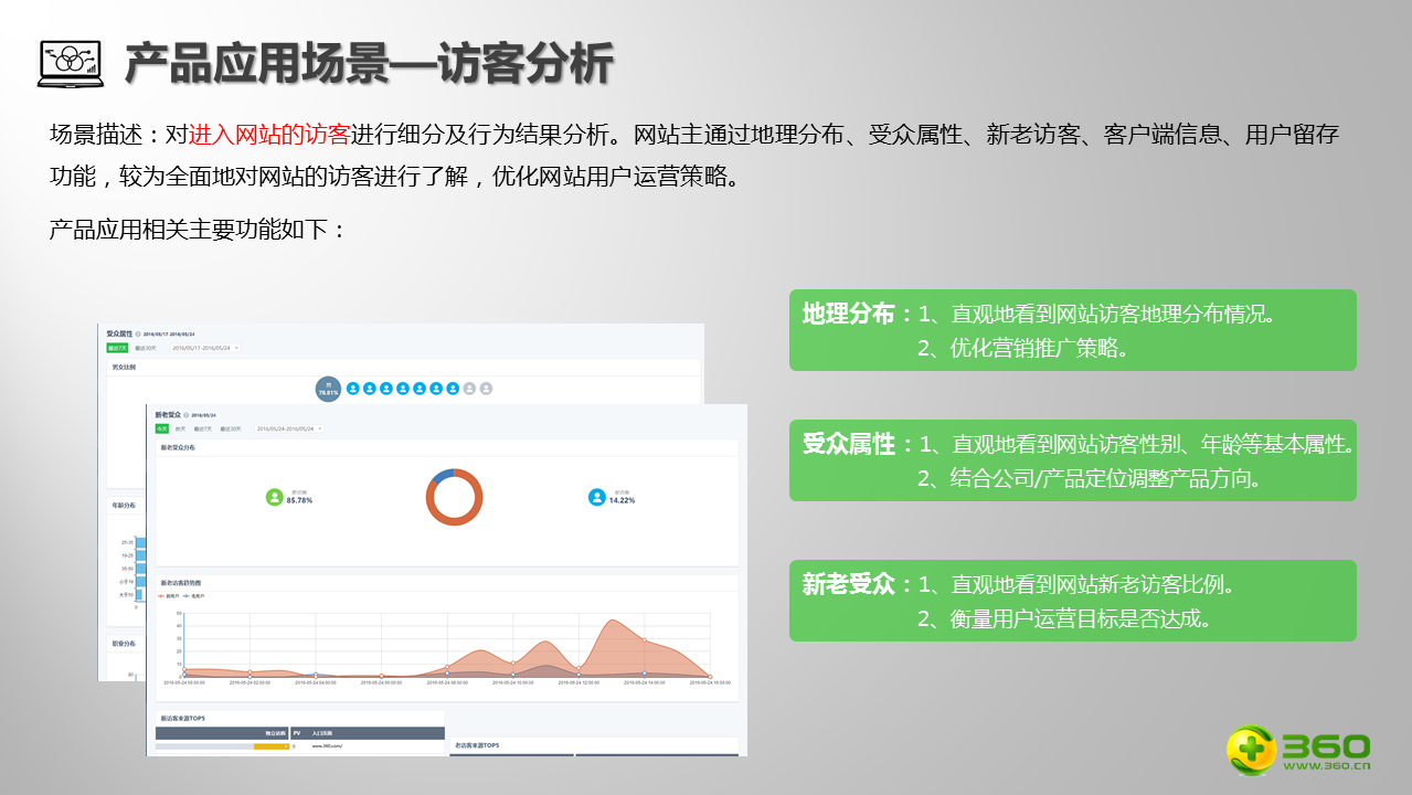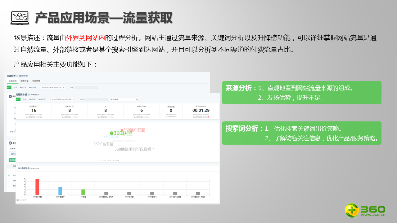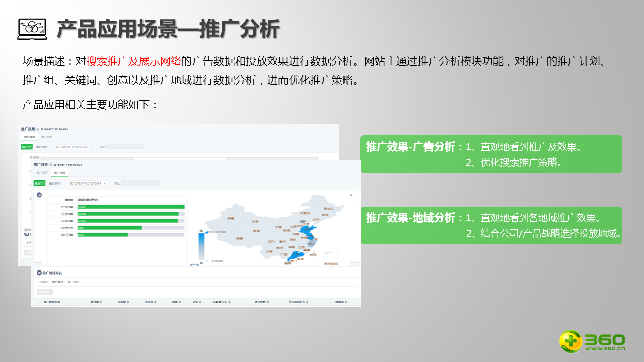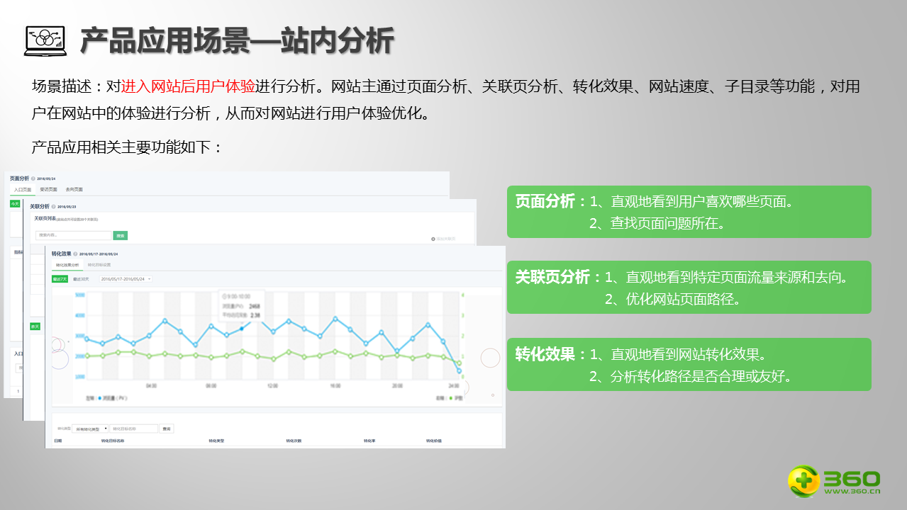 360分析是由360自主研發,幫助廣告主實現推廣效果評估及流量分析的統計分析工具。
