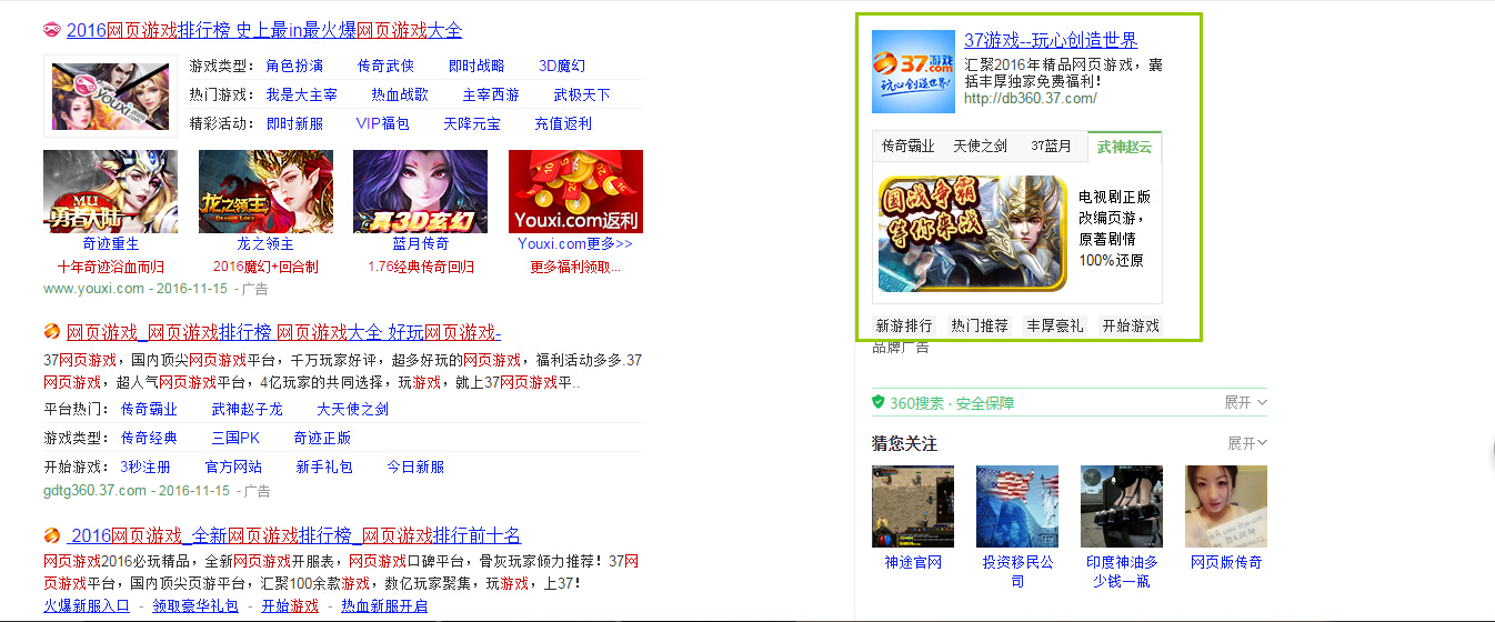 品牌日出位于搜索結果頁的首屏頂部右側的黃金位置,圖文混排的創意展現樣式能極大的提升網民用戶對企業信息的關注度,通過融合圖片、文字、視頻、Flash及API等多樣化的定制服務,使網民在搜索時就能第一時間獲得企業的品牌信息及產品獲得,顯著提升營銷效果。