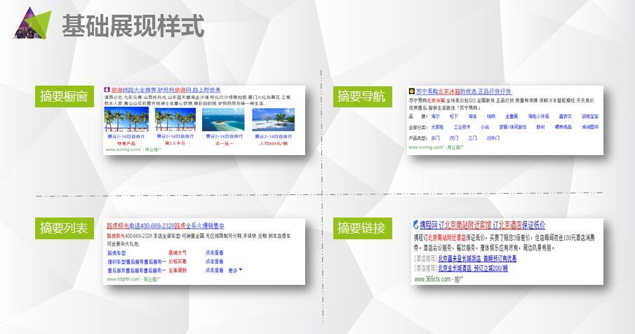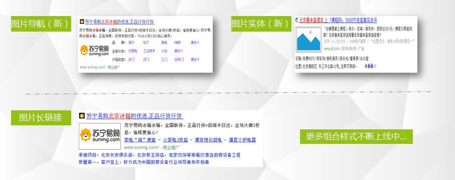 ·流量引尋效率更高:新穎的樣式吸引更多點擊;多條子鏈有效擴展推廣信息,展示信息更豐富;